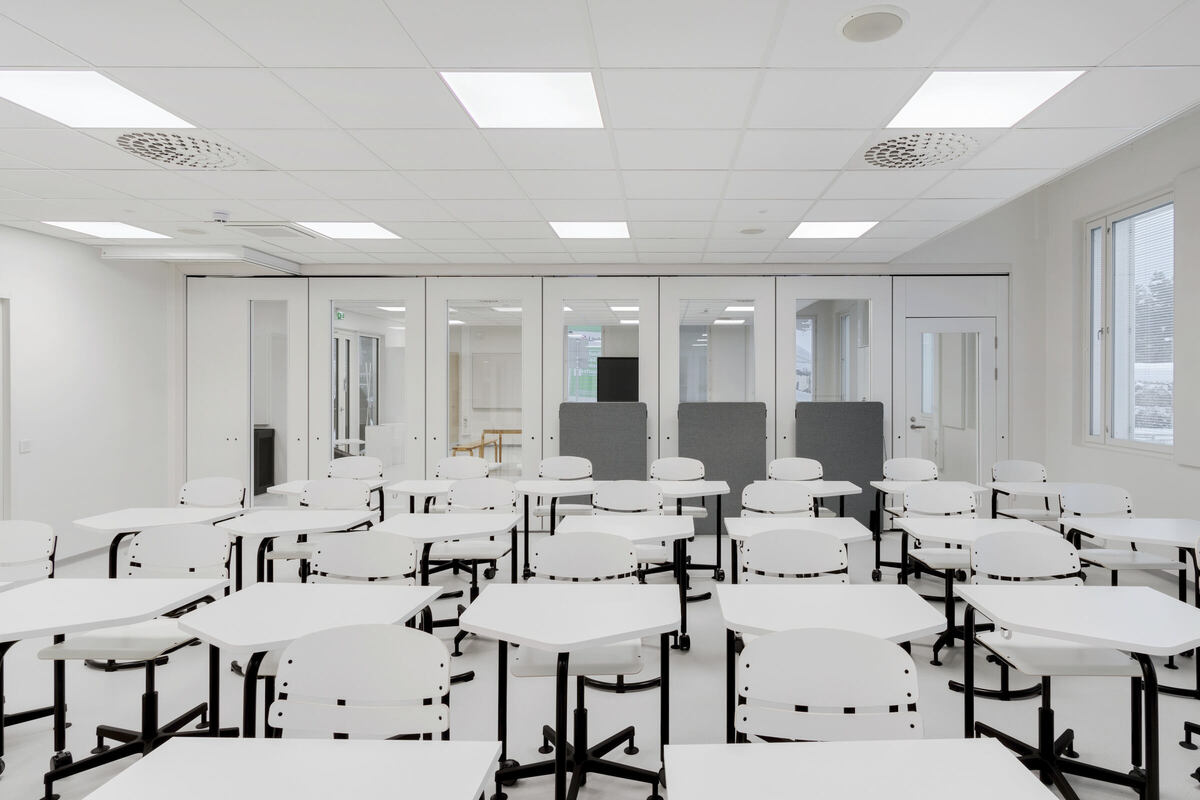 The city of Hämeenlinna aims to achieve carbon neutrality by 2035, which is also reflected in its building projects. The new school building and sports hall are both classified as A-energy buildings and utilise smart LED lighting, geothermal heating, solar energy, and heat recovery from exhaust air.