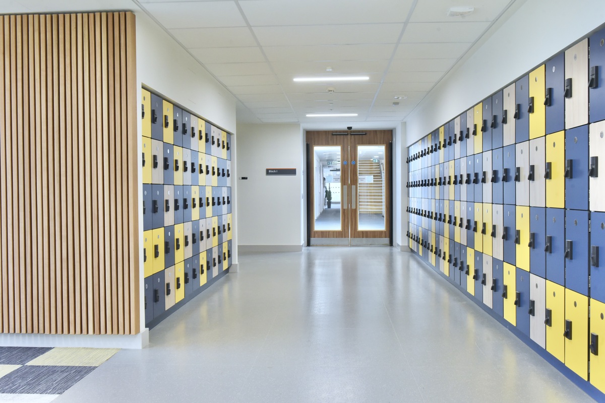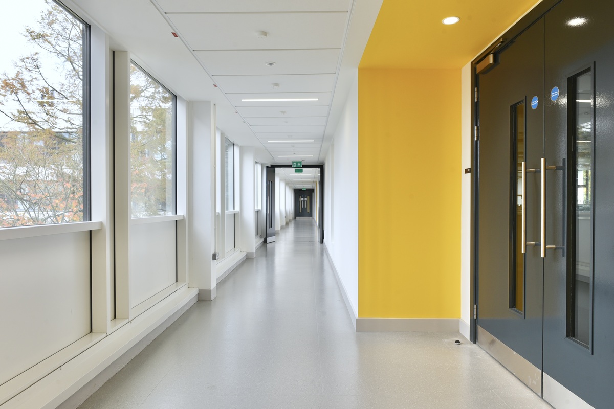 In addition to the vibrant ceiling design in the classroom, the acoustic comfort was also prioritised in adjacent circulation areas. Ecophon Focus™ E was installed in the corridors to ensure consistent sound absorption throughout the space, creating a calm, welcoming environment for students and staff.