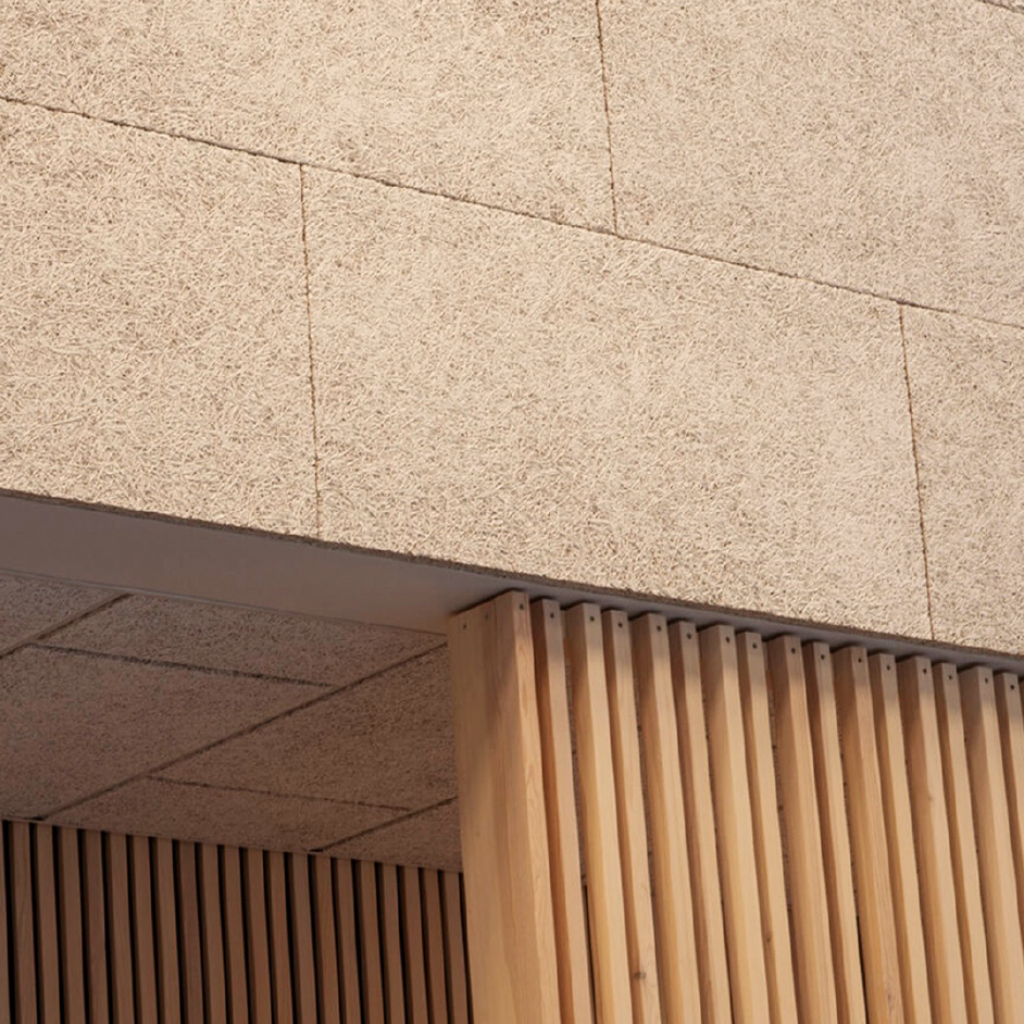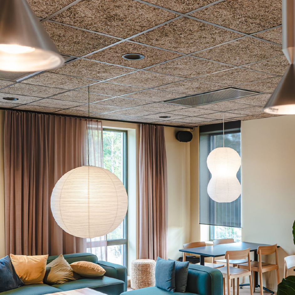 Create a warm and natural atmosphere with Saga wood wool tiles. Contributes to a pleasant environment by combining the qualities of wood with acoustic advantages.